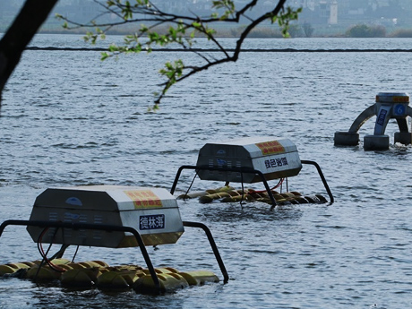 水動力控藻器以固定的方式間隔布置于藍藻暴發水域中,通過調控水溫和水流速,改變藍藻生長所需的環境條件,實現預防和控制藍藻大規模暴發的目的。可廣泛用于湖泊、水庫、河道、魚塘以及景觀水體等。