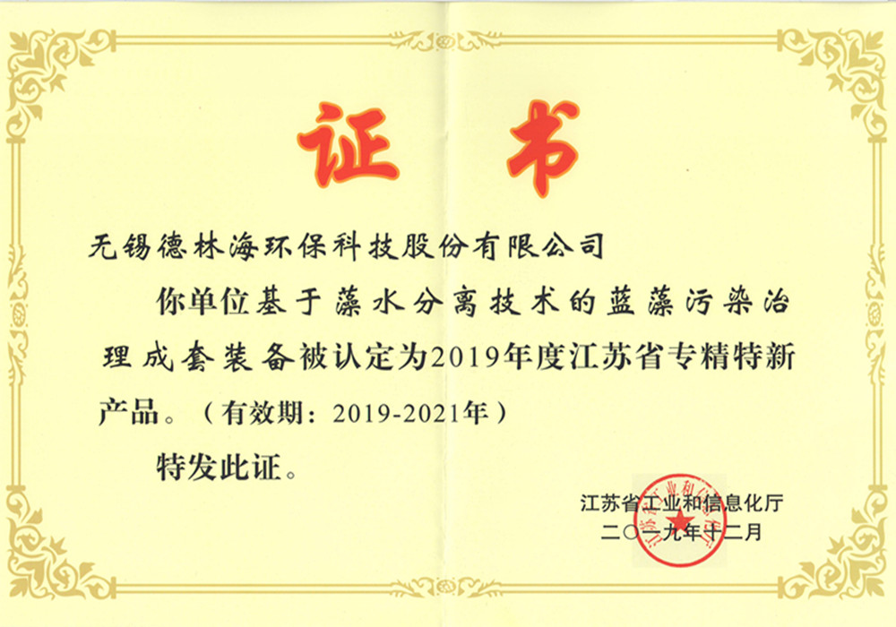 近日,江蘇省工業(yè)和信息化廳公布了2019年度省級(jí)專(zhuān)精特新產(chǎn)品認(rèn)定名單,我司的“基于藻水分離技術(shù)的藍(lán)藻污染治理成套裝備”成功入選。