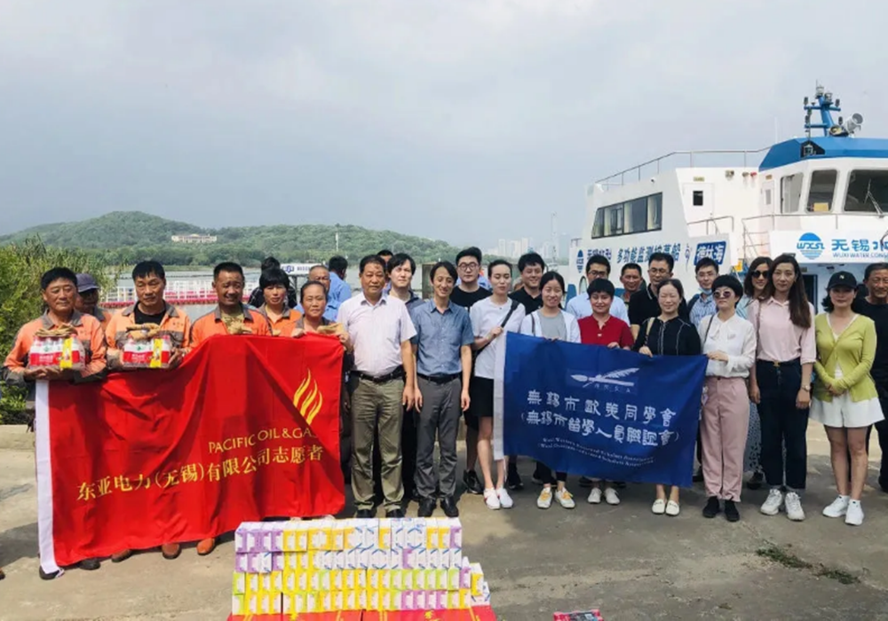 2020年8月26日,無錫市歐美同學會(無錫市留學人員聯誼會)調研組一行20余人,赴藍藻打撈一線實地調研太湖藍藻治理情況。調研組參觀了我司楊灣藍藻打撈點及藻水分離站,慰問了一線藍藻打撈工人,隨后乘船查看太湖水質藻情,并與市藍藻辦就“一三五”藍藻治理無錫模式進行座談交流。