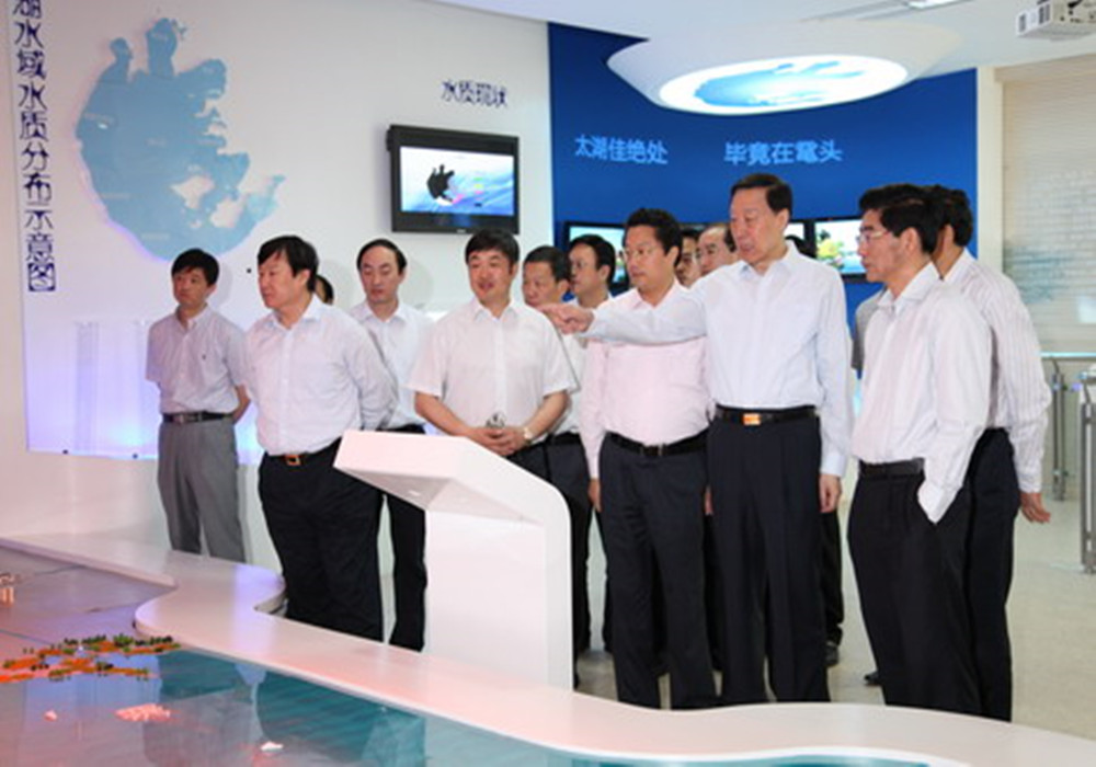 今年以來,太湖水質(zhì)總體穩(wěn)定,但隨著氣溫升高、日照增強(qiáng),太湖安全度夏仍然面臨著挑戰(zhàn)和壓力。羅志軍首先來到楊灣藻水分離站考察。當(dāng)天,楊灣太湖藍(lán)藻治理科技館和江蘇省水利物聯(lián)網(wǎng)示范應(yīng)用基地在這里揭牌落成。羅志軍興致勃勃地觀看了“感知太湖、智慧水利”技術(shù)演示。與中科院計算機(jī)所聯(lián)手合作,我市在國內(nèi)率先將先進(jìn)的物聯(lián)網(wǎng)技術(shù)應(yīng)用于太湖水利和環(huán)保領(lǐng)域,安放在湖中的傳感器,可將監(jiān)測到的水質(zhì)數(shù)據(jù)和藻密度等信息即時傳輸?shù)奖O(jiān)控中心,進(jìn)行數(shù)據(jù)比較分析后,即可通過智能調(diào)度實施藍(lán)藻打撈等程序。目前,一期工程已設(shè)立了10個監(jiān)控點,有50艘打撈船舶進(jìn)入這個系統(tǒng)。通過聯(lián)網(wǎng),手機(jī)、電腦等遠(yuǎn)程終端也能共享數(shù)據(jù)信息。在演示現(xiàn)場,羅志軍通過手機(jī)接收到了湖水水質(zhì)的最新數(shù)據(jù),對這一具有自主知識產(chǎn)權(quán)的新成果給予了充分肯定。他說,物聯(lián)網(wǎng)技術(shù)在太湖治理中的最新運用,為治水撈藻提供了一條新的有效的路徑。