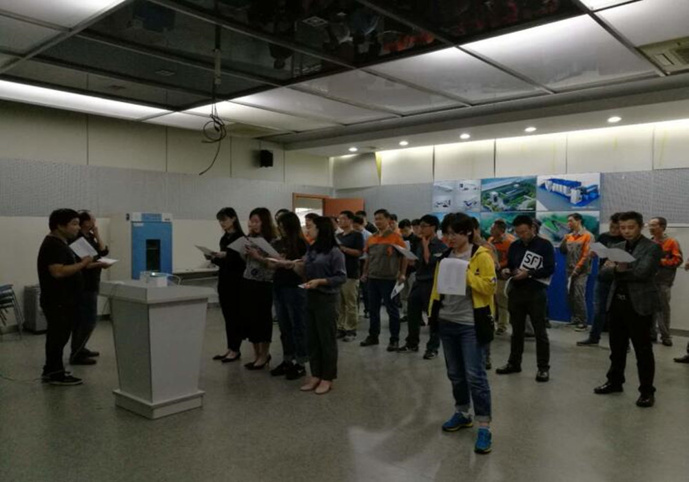 2017年9月30日下午,楊灣藻水分離站的多媒體室內(nèi)回響著嘹亮的三大紀律八項注意旋律。我司全體員工在合唱《安全靠自己》的安全歌,充滿激情。