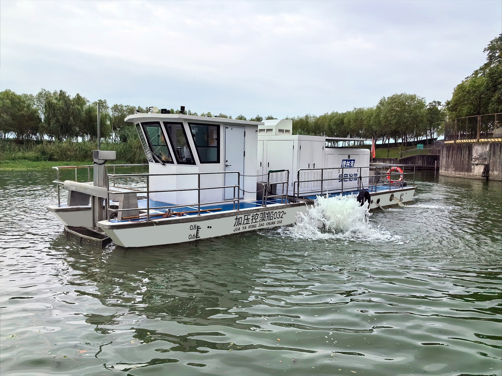 加壓控藻船作為深潛式高壓控藻成套裝備的重要成員,傳承了加壓控藻技術的純物理法技術工藝,治理過程不添加任何化學藥劑,不會對水體產生二次污染,可滿足對藍藻水華進行高效的機動應急處置需求。