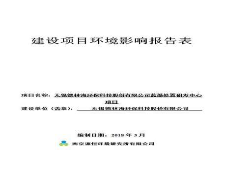 項目名稱:無錫德林海環保科技股份有限公司藍藻處置研發中心項目 建設單位:無錫德林海環保科技股份有限公司 公示時間:2019.3.27~2019.4.3