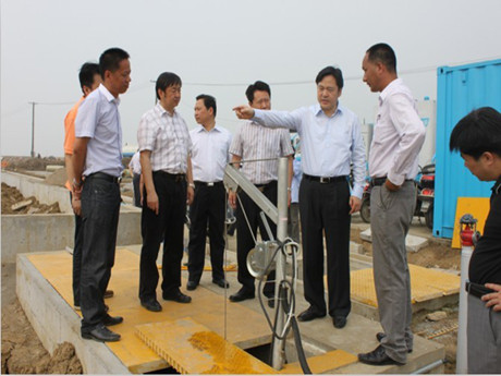 2012年6月12日上午,無錫市副市長陳金虎、副秘書長周浩清、水利局王局長、張副局長、水文局和藍藻辦領(lǐng)導(dǎo)視察黃泥田、漁港兩座藻水分離站的運行情況。